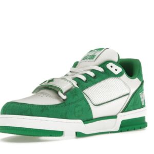 Step into bold luxury streetwear with the Louis Vuitton Trainer Sneaker in Green Monogram Denim. Inspired by the iconic LV Trainer silhouette, this sneaker features a rich green denim upper with signature monogram detailing, delivering a standout look that blends high-fashion energy with everyday street style.
