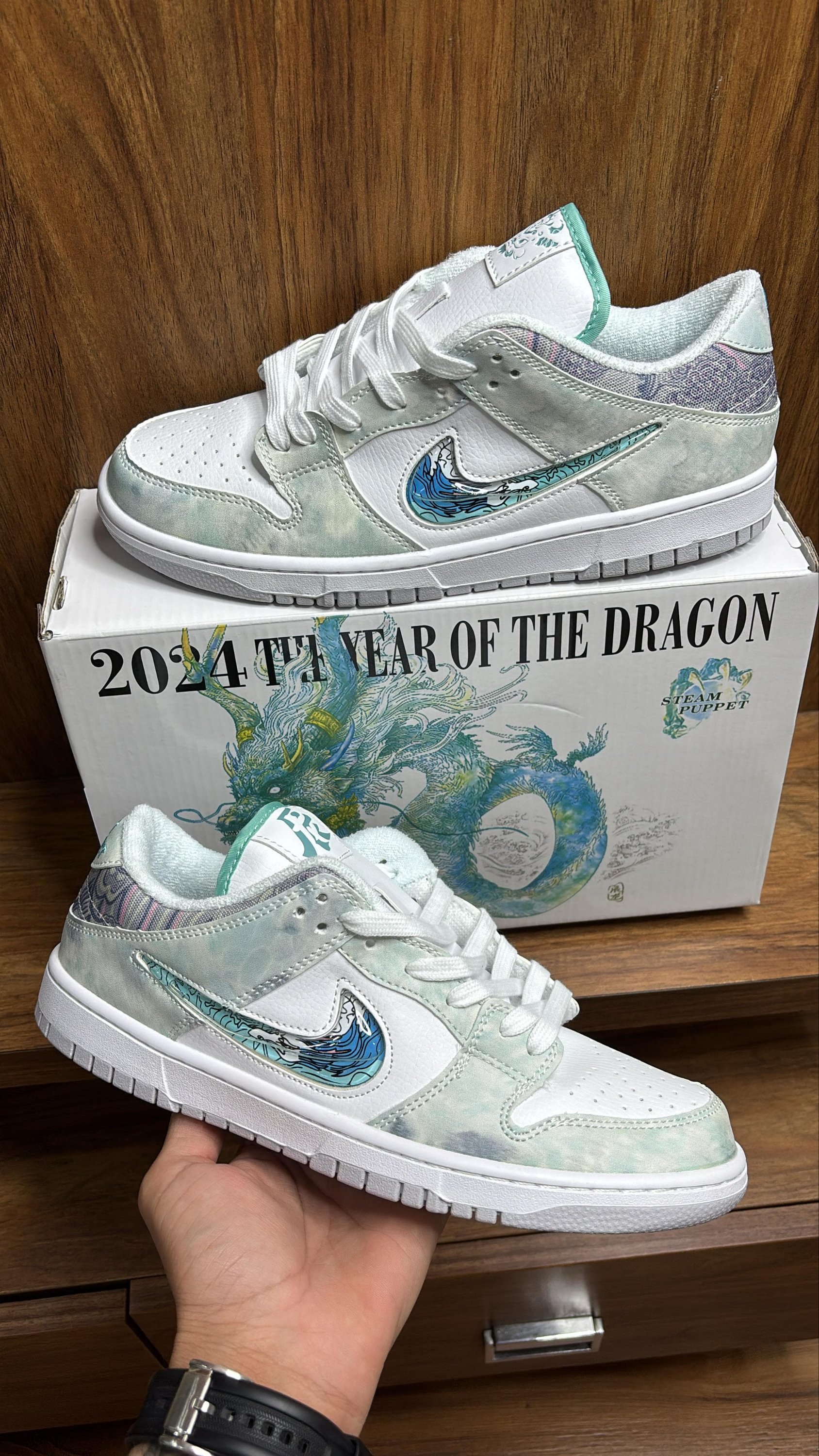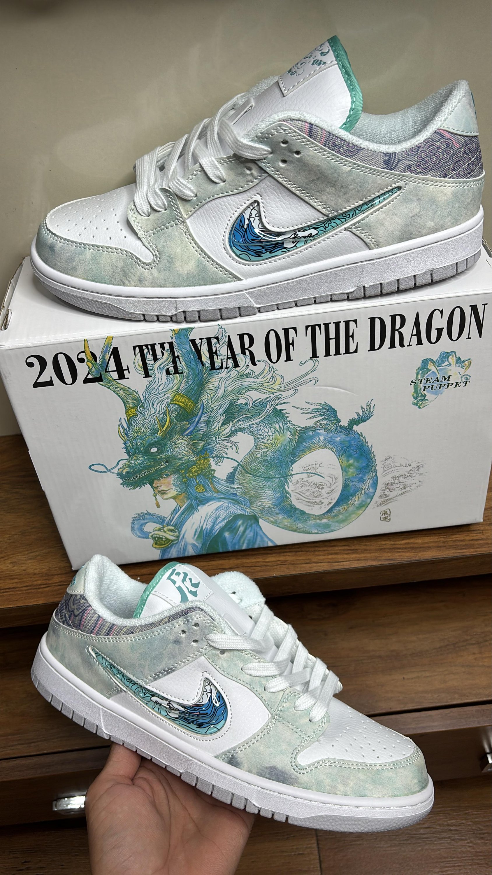The Nike SB Dunk Low “Year of the Dragon – Steam Puppet” is a bold, storytelling sneaker inspired by Lunar New Year artistry and traditional dragon symbolism. Featuring rich textures, detailed graphics, and vibrant accents, this pair stands out as a true collector-style SB Dunk with strong cultural influence.